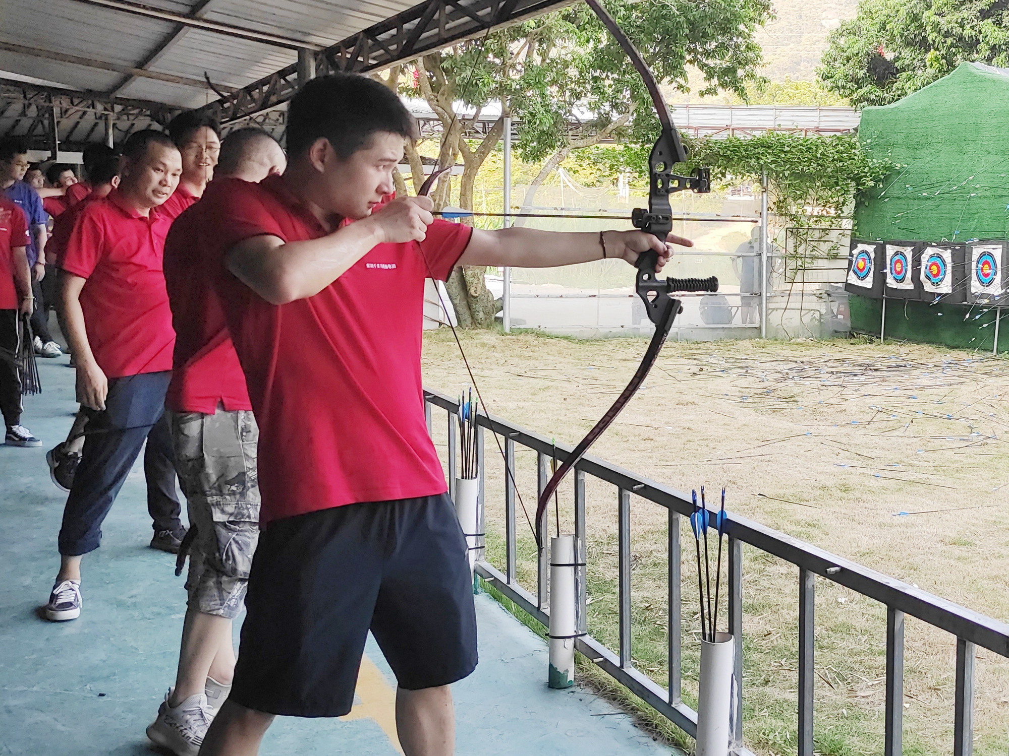 CS真人對戰(zhàn)之后,是距離CS基地10米遠(yuǎn)處的射箭活動。蘇軾說,“會挽雕弓如滿月”,當(dāng)真正接觸到箭之后,我們才明白,這如滿月的箭中包含了多少手臂肌肉中分泌的乳酸。