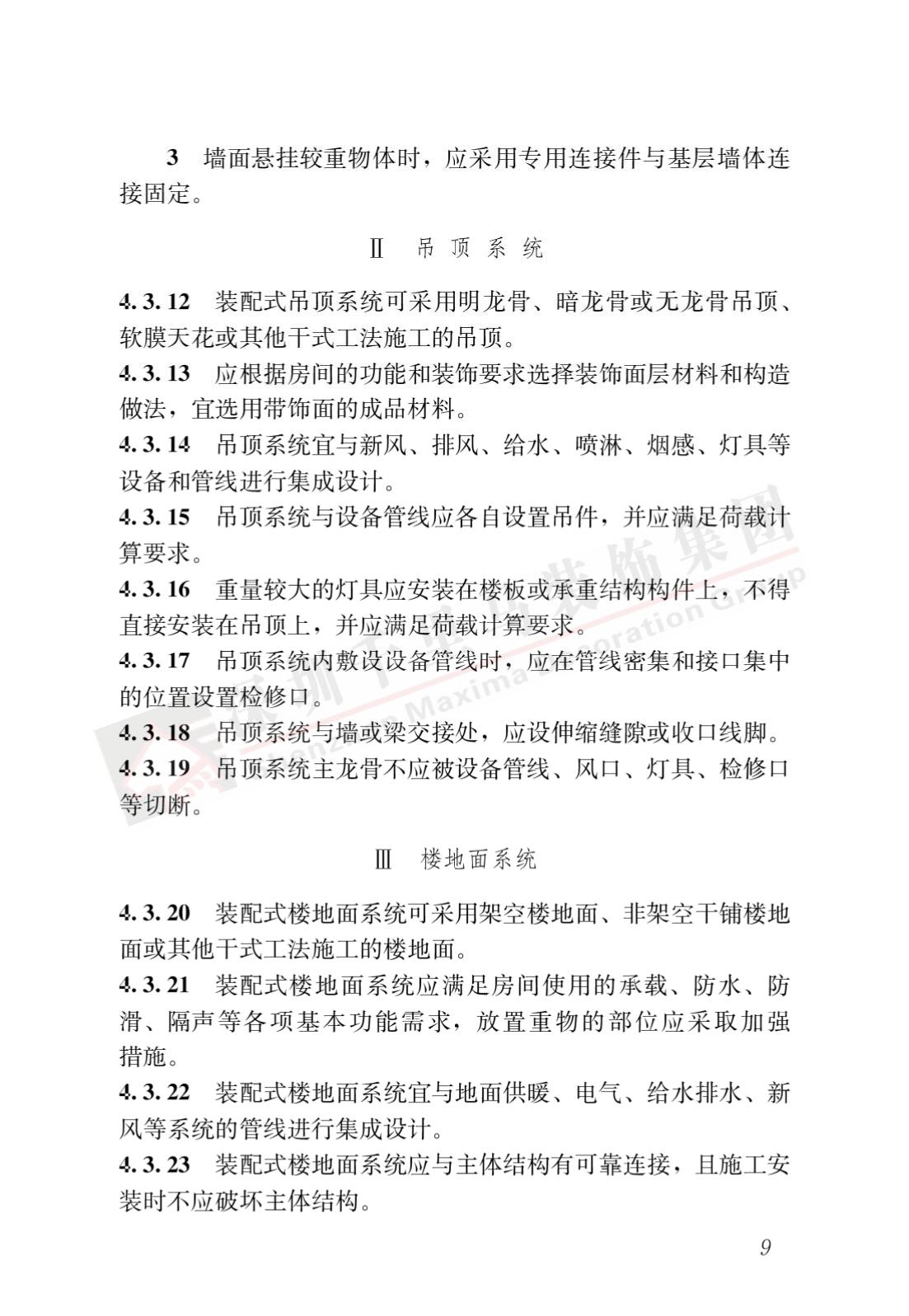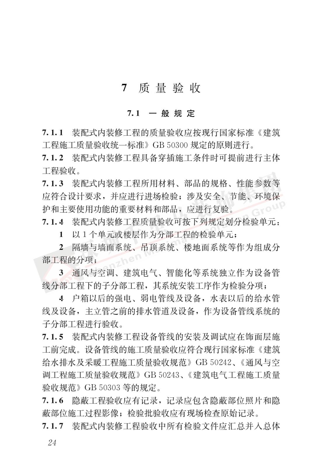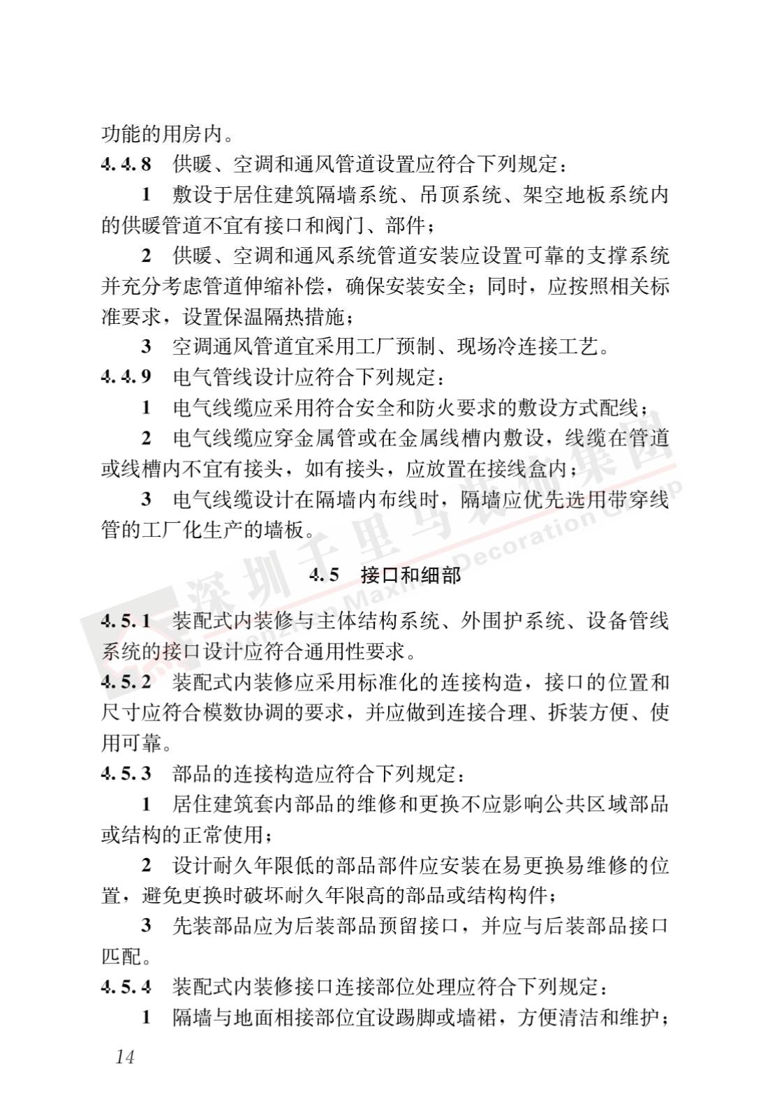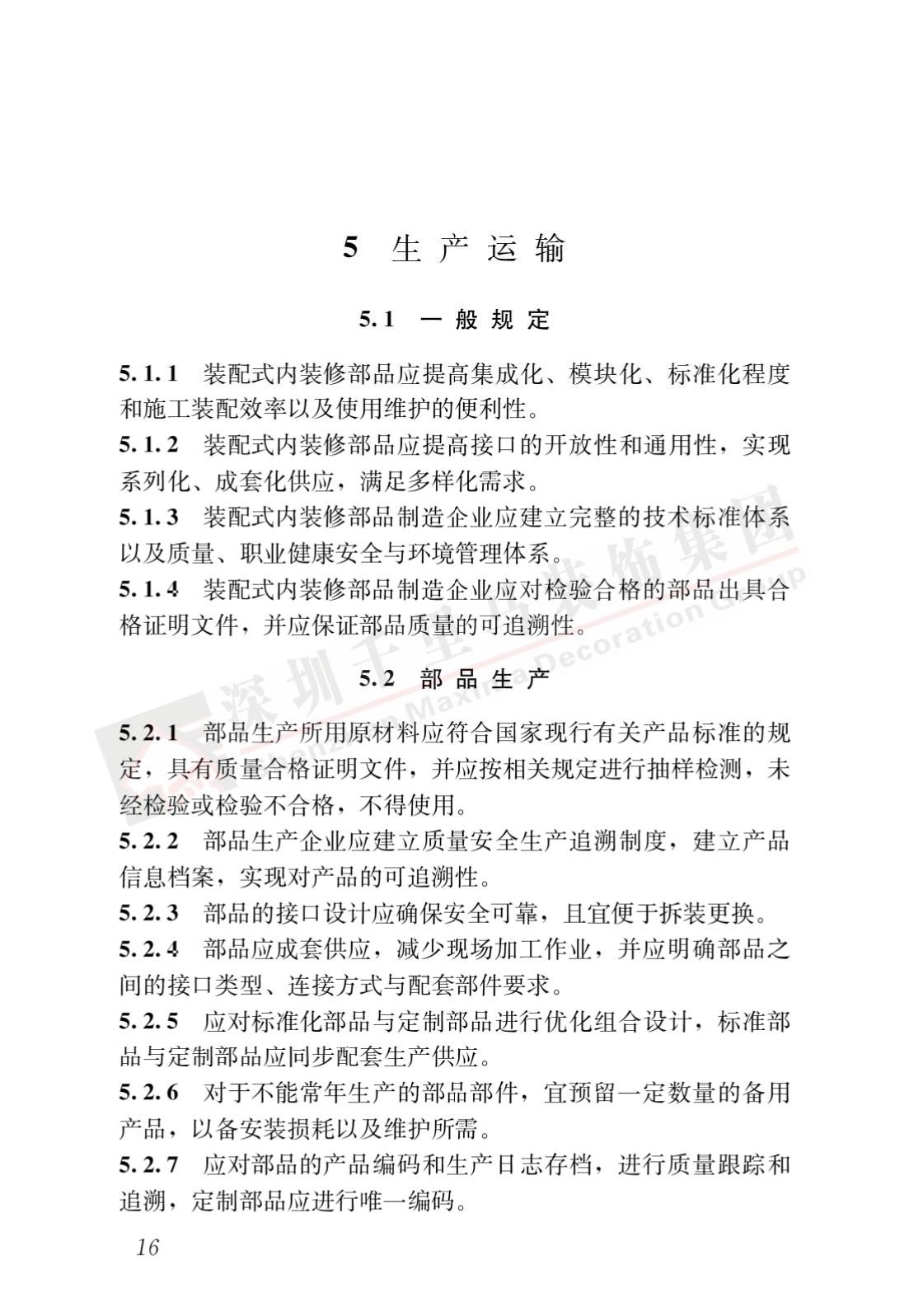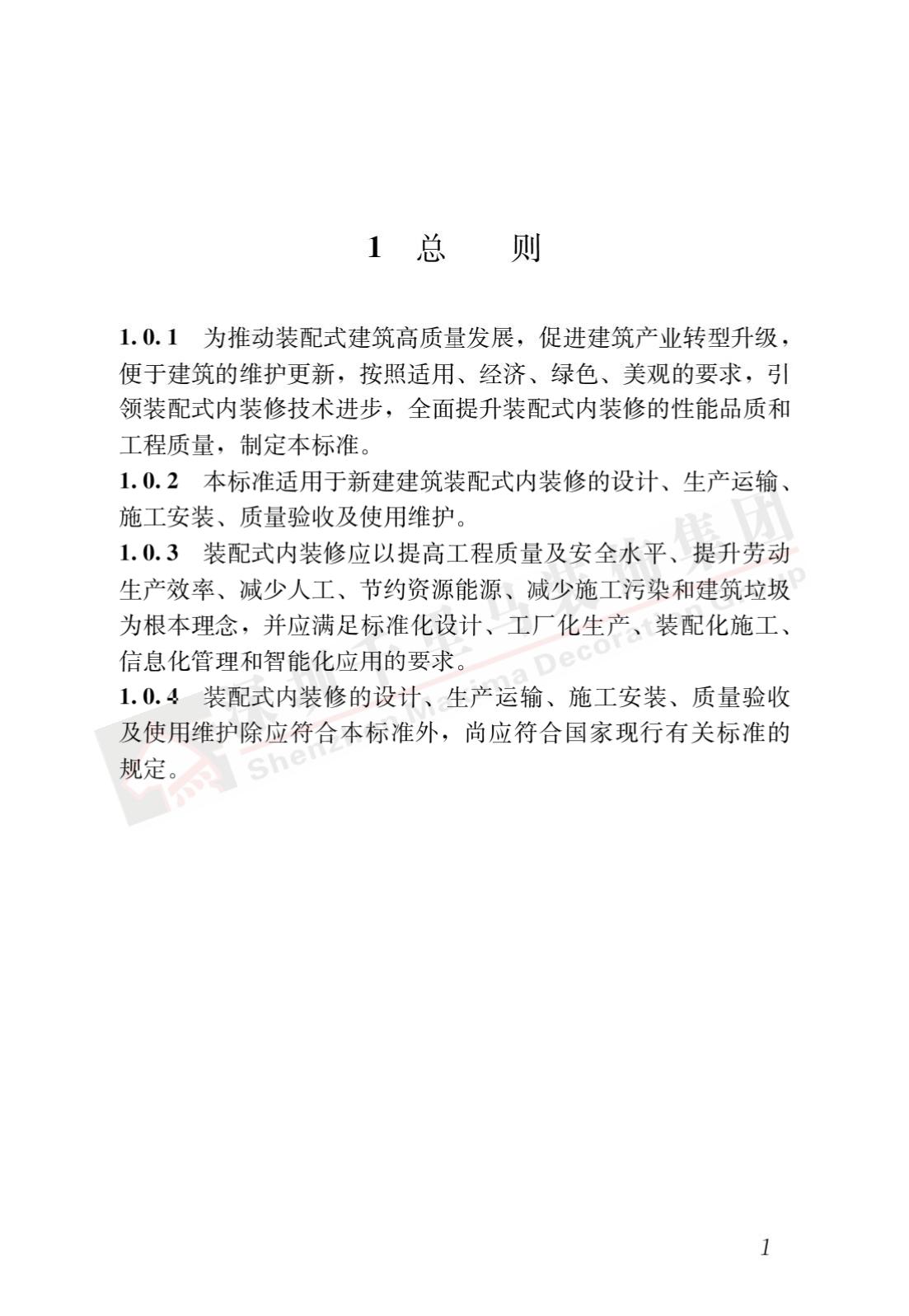裝配式內(nèi)裝修的設(shè)計(jì)、生產(chǎn)運(yùn)輸、施工安裝、質(zhì)量驗(yàn)收及使用維護(hù),除應(yīng)符合本標(biāo)準(zhǔn)外,尚應(yīng)符合國家現(xiàn)行有關(guān)標(biāo)準(zhǔn)規(guī)定。