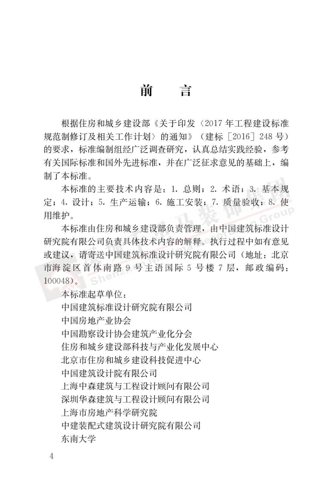 標(biāo)準(zhǔn)適用于新建建筑裝配式內(nèi)裝修的設(shè)計(jì)、生產(chǎn)運(yùn)輸、施工安裝、質(zhì)量驗(yàn)收及使用維護(hù),主要技術(shù)內(nèi)容包括總則、術(shù)語、基本規(guī)定、設(shè)計(jì)、生產(chǎn)運(yùn)輸、施工安裝、質(zhì)量驗(yàn)收、使用維護(hù)。