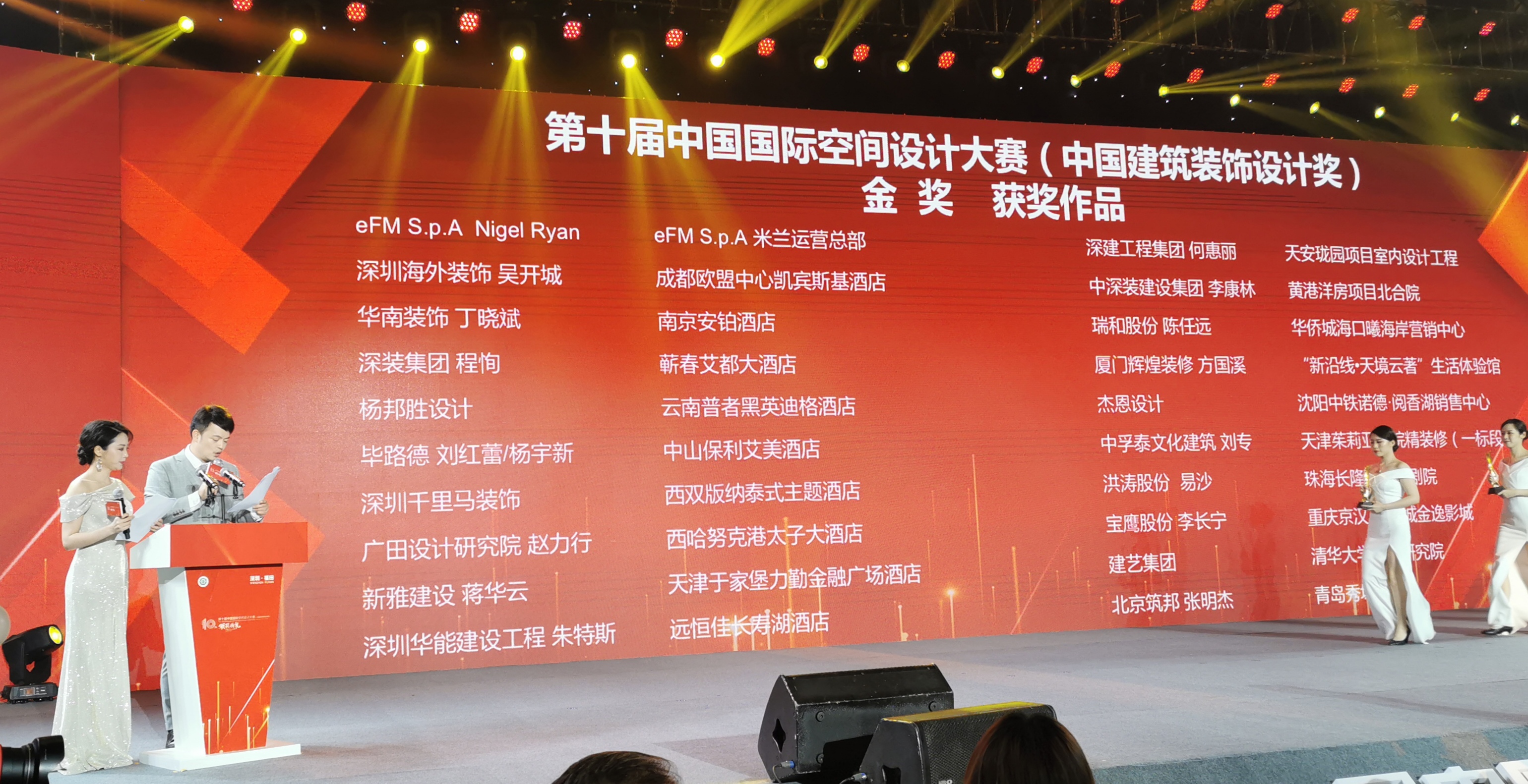 9月16日,2020中國建筑裝飾產業發展論壇暨第十屆中國國際空間設計大賽(中國建筑裝飾設計獎)頒獎典禮在深圳市福田區舉行。中國建筑裝飾協會會長劉曉一,深圳市福田區委副書記、區長黃偉等領導以及行業企業家、設計翹楚共同見證了這一年一度的大賽盛典,獲獎名單在本次盛典上隆重揭曉。