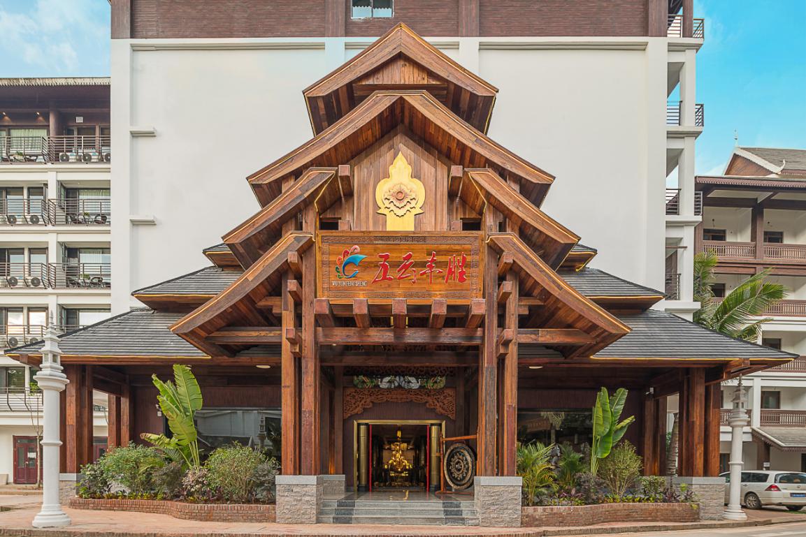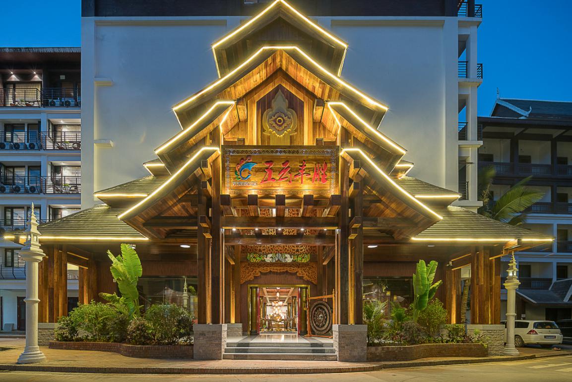 在酒店的門頭設計上,沿用佛教國家泰國的“多層屋頂”的結構設計,給人向外伸展、莊重大氣的美感。
