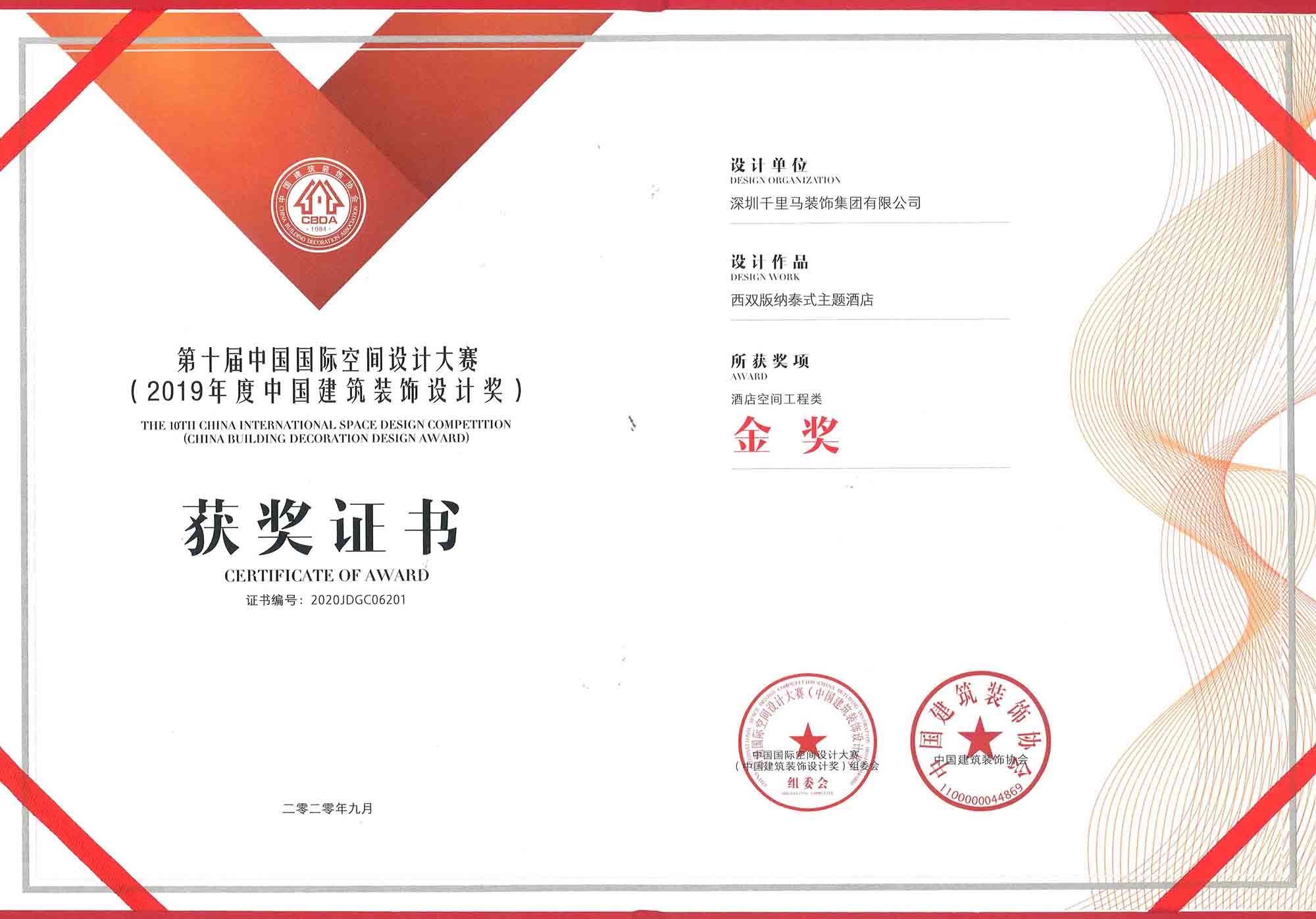 本次賽事中,深圳千里馬裝飾集團設計的作品“西雙版納泰式主題酒店”,榮獲中國建筑裝飾設計酒店空間類金獎,這也是深圳千里馬裝飾集團在中國建筑裝飾設計的頂級賽事中連續兩屆蟬聯金獎。