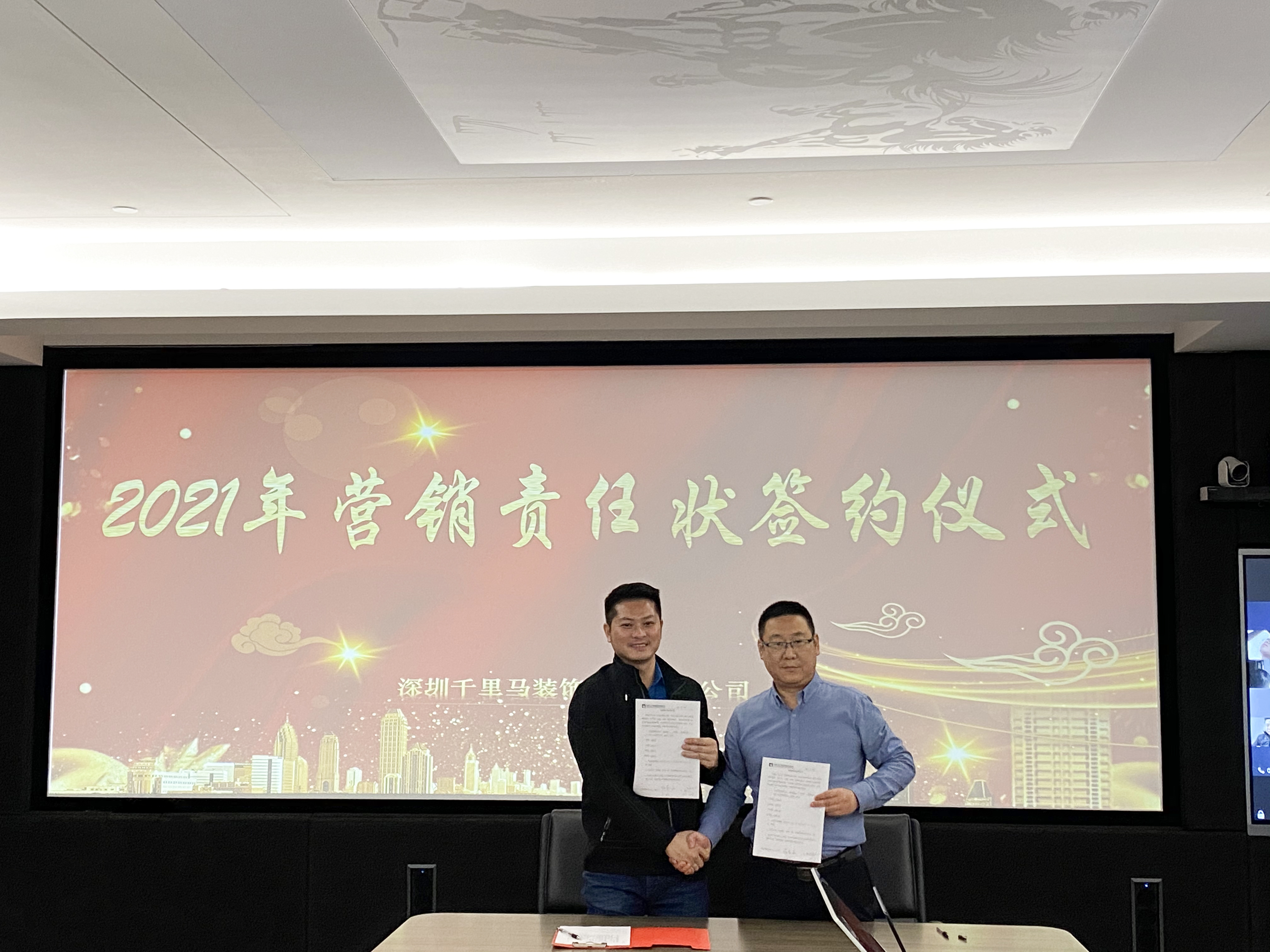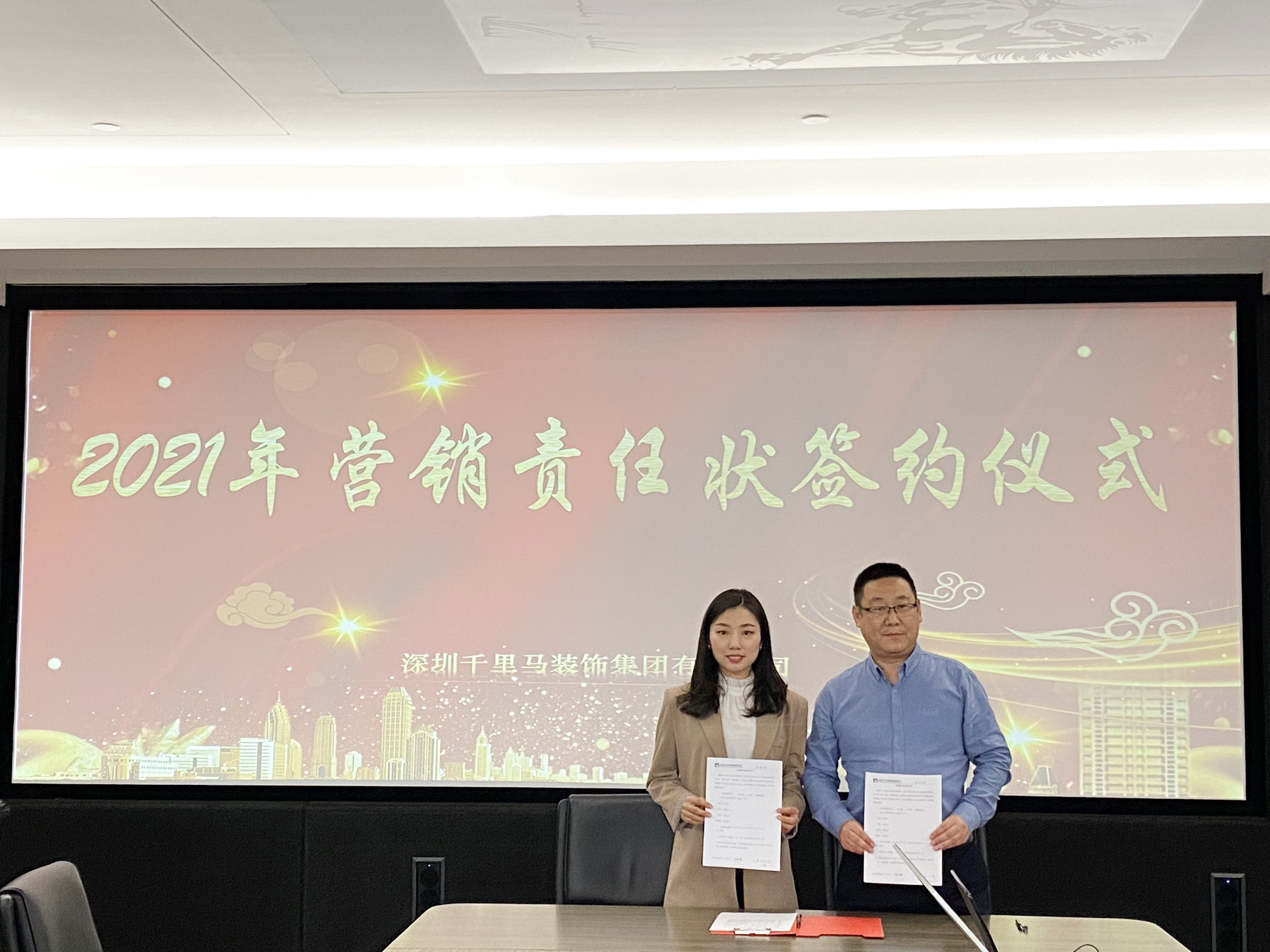 2月27日,深圳千里馬裝飾集團全體營銷將士用鏗鏘有力的聲音共同宣讀誓言:2021年營銷目標必達。