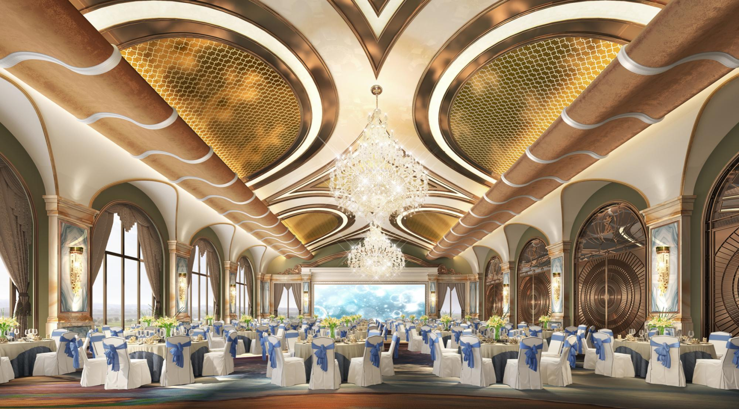 霸州國際酒店為五星級豪華溫泉酒店,酒店為新古典設計風格,沒有復雜的功能分割,整體設計氛圍營造出一種舒適、奢華的空間感受,酒店的設計思想是來源于對宮殿城堡的喜愛和無限幻想,把現代風格和異域文化風格結合起來。整個空間色彩豐富,襯托高品位的家具、燈具及藝術品陳設,結合突出的立體感和節奏感,烘托出酒店高雅的文化氛圍。